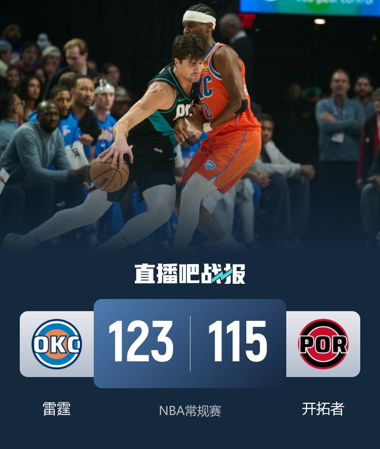 比赛开始,两队开场势均力敌,比分咬得很紧,开拓者内外开花,雷霆轮番冲击内线得手予以回应,以赛亚·乔连中三分带队确立优势,次节杨瀚森登场后拿到后场篮板并完成抢断,开拓者奋力反击一举抹平分差,卡马拉三分命中率队完成8-0的攻击波反超比分,雷霆及时回暖,半场战罢开拓者55-54领先雷霆。易边再战,双方继续缠斗,比分始终紧咬,两队连续造成杀伤罚球拿分,末节开拓者命中率骤降,雷霆稳扎稳打占据场上主动,最终,雷霆击败开拓者。客场过关。